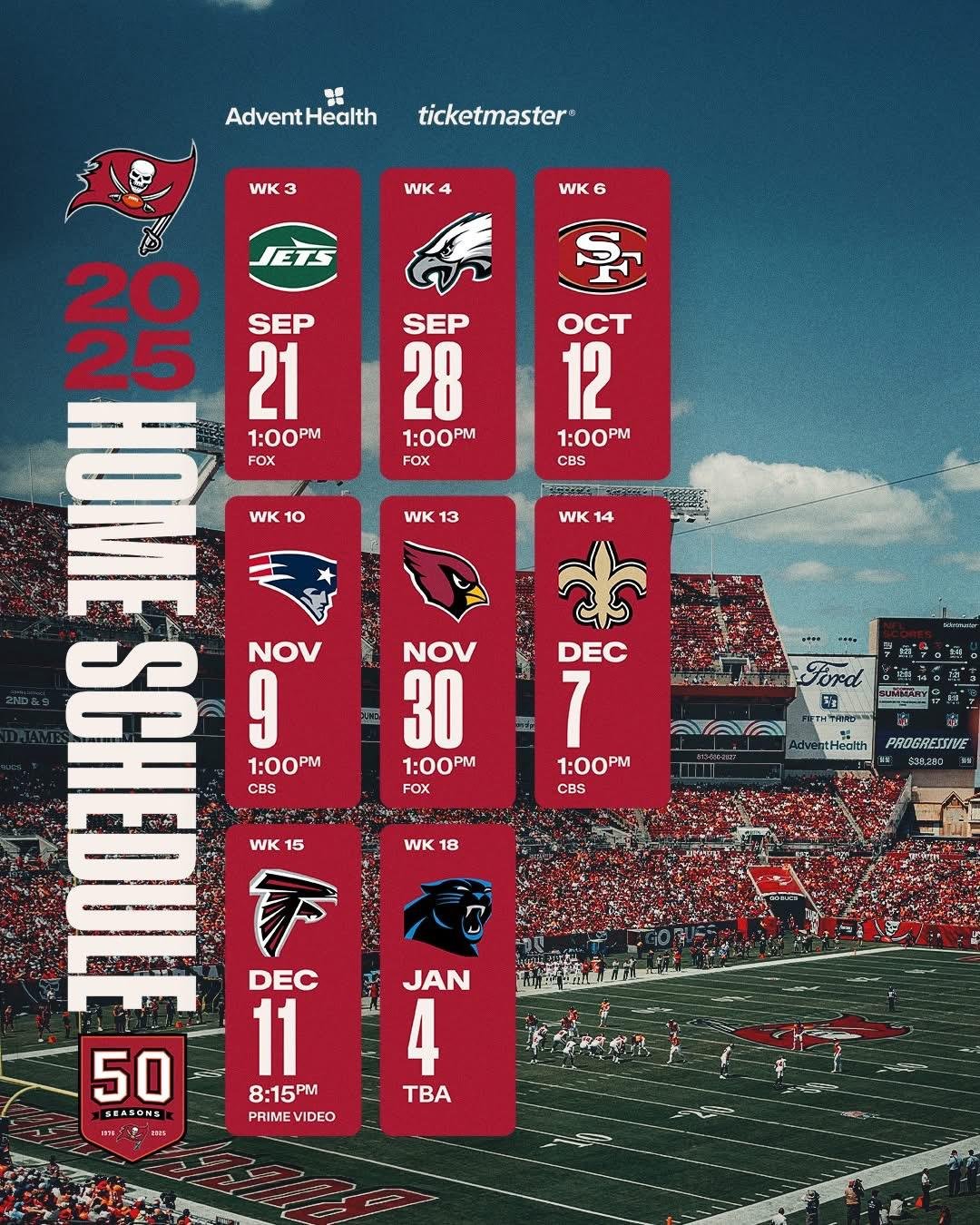 • Time: Tampa Bay Buccaneers (conhecidos como Bucs)